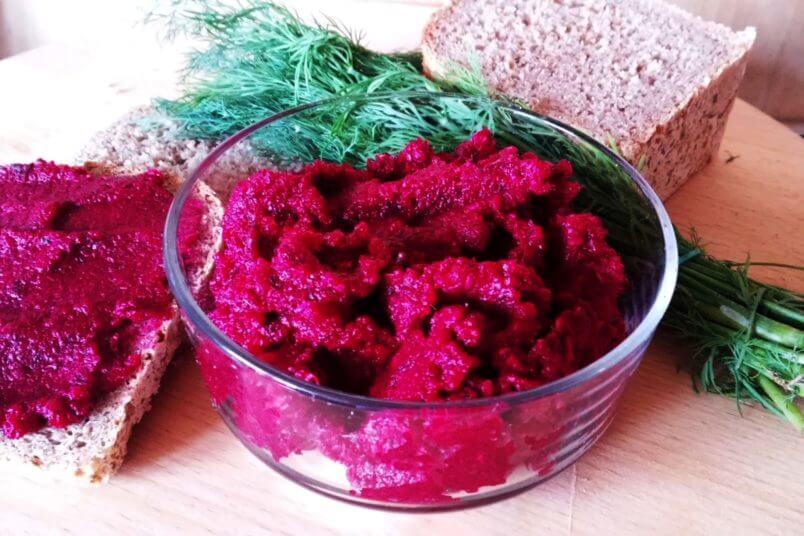 Buraki obierz i ugotuj na parze do miękkości. Do misy blendera wrzuć wszystkie składniki, wraz z przestudzonymi burakami do uzyskania gładkiej konsystencji. Schodź w lodówce na minimum 2 godziny i z kanapkami, krakersami czy pokrojonymi surowymi warzywami.