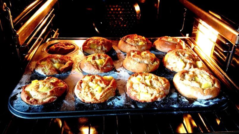 Po 45 minutach wyrastania, upiecz je w temperaturze około 180C przez około 15 minut (lub do suchego patyczka).