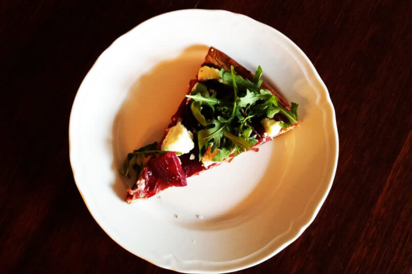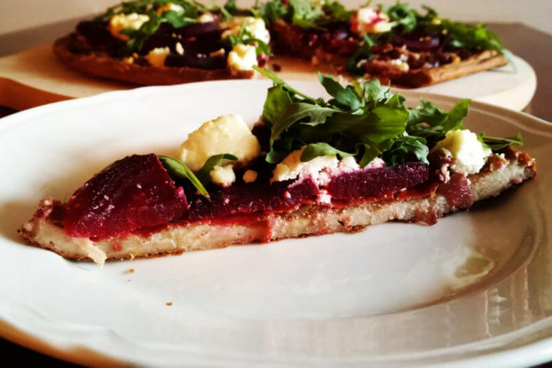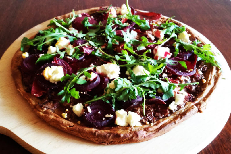 Pizza gryczana z burakiem i serem kozim