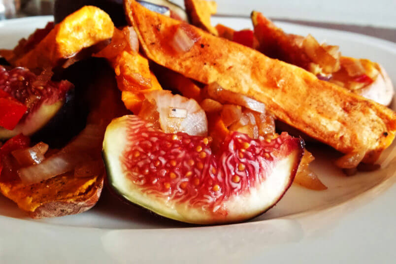16 Sty Szybka sałatka z pieczonymi batatami, świeżymi figami, chilli i octem balsamicznym